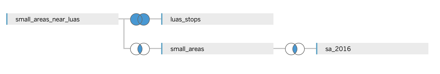 The small_areas_near_luas custom sql looks like the following. It returns a distinct list of small areas within 500m